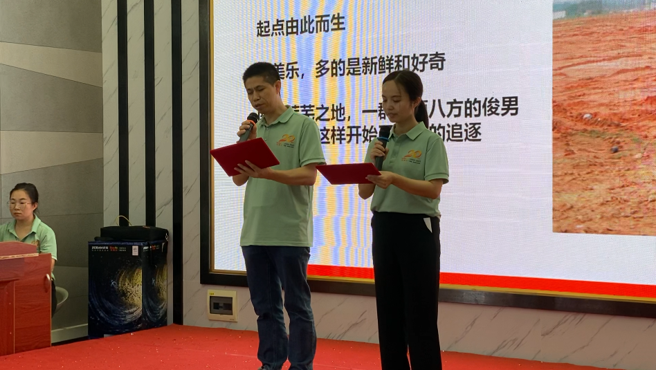 采購(gòu)中心成員的節(jié)目《在一起,再出發(fā)》,以詩(shī)朗誦的形式為華美樂慶生。一句“我緊隨您的腳步,一路風(fēng)雨無阻。”訴說了員工與公司多年來同舟共濟(jì)的歷程與自身努力的認(rèn)可。面對(duì)未來,“戰(zhàn)勝自我,開拓創(chuàng)新,重新出發(fā)!”