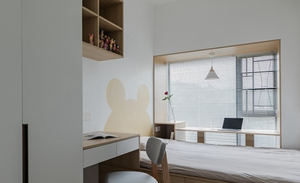 兒童房用原木+灰色搭配,溫馨有助睡眠,榻榻米的設(shè)計(jì)很是實(shí)用,收納實(shí)力很強(qiáng)。