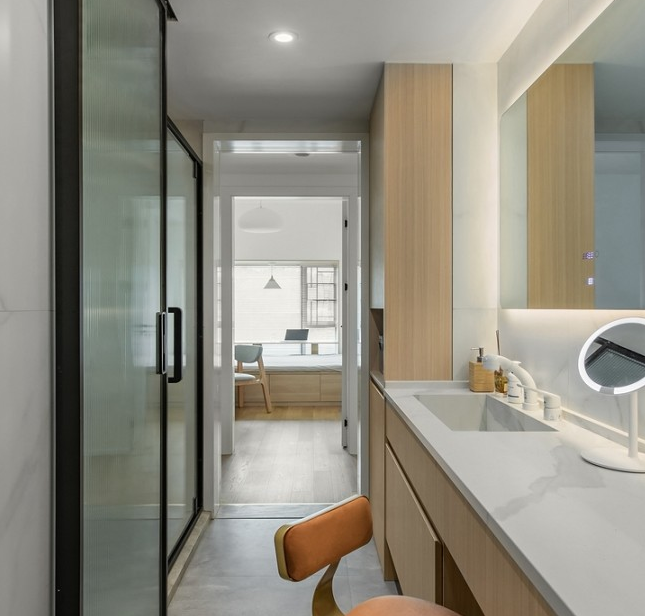 三分離的衛(wèi)生間,乾區(qū)定制的外置洗漱臺(tái),緩解了一家人在早晚高峰的擁擠。