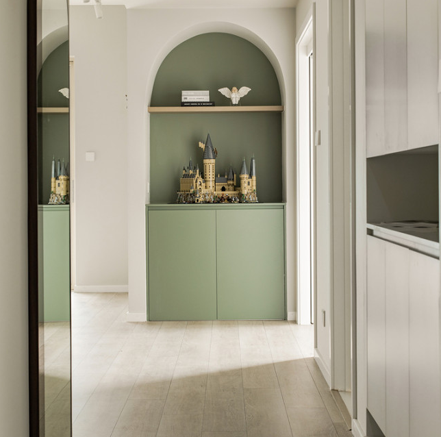 玄關(guān),一個(gè)過渡的空間。每日出門,會(huì)在這里整理妝容、衣服,光鮮亮麗地出門;每日歸家,也會(huì)在這里卸下整日的疲憊,進(jìn)入家的溫柔鄉(xiāng)。